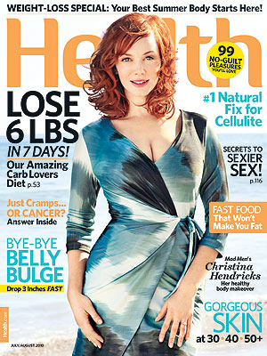 After enduring a scathing public critique of her curves earlier this year, Mad Men star Christina Hendricks admits that she's still smarting. "I still remember all those negative comments, despite all the wonderful positivity," Health's July/August cover girl says of reading Internet postings about her appearance. "That's why we're all in therapy! [We remember] the 10 bad things that happen to us instead of the 100 nice ones." But despite the criticism, Hendricks says she has always celebrated her curves. "Back when I was modeling, the first time I went to Italy I was having cappuccinos every day, and I gained 15 pounds. And I felt gorgeous!" she says. "And I never tried to lose it, 'cause I loved it." Now, at 35, the former dancer does have to work to maintain her famous shape, preferring weight training and working with the BOSU ball to the treadmill. "I've really had to train myself to get down to the gym," she says. "But what surprised me was that my husband said [the other day], 'I'm going down to work out,' and I was like, 'Oh, I wish I was going.' My friends will read this and be like, "No you didn't,'" she laughs. "But it's true!"